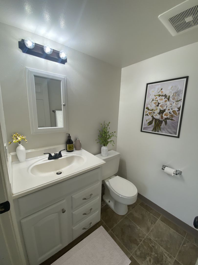 • 3 bedrooms, 1.5 bathrooms (half bath in primary bedroom)