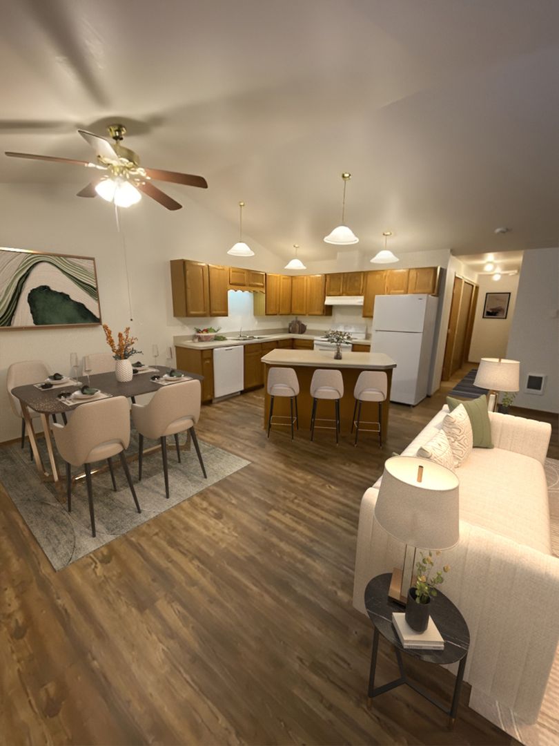 Cook, relax, and live a little easier in a bright, open-concept space that keeps life simple and stress-free. Whether you’re enjoying the vaulted living room, whipping up dinner in your full kitchen, or pulling into your attached garage after a long day, this place just makes sense.
