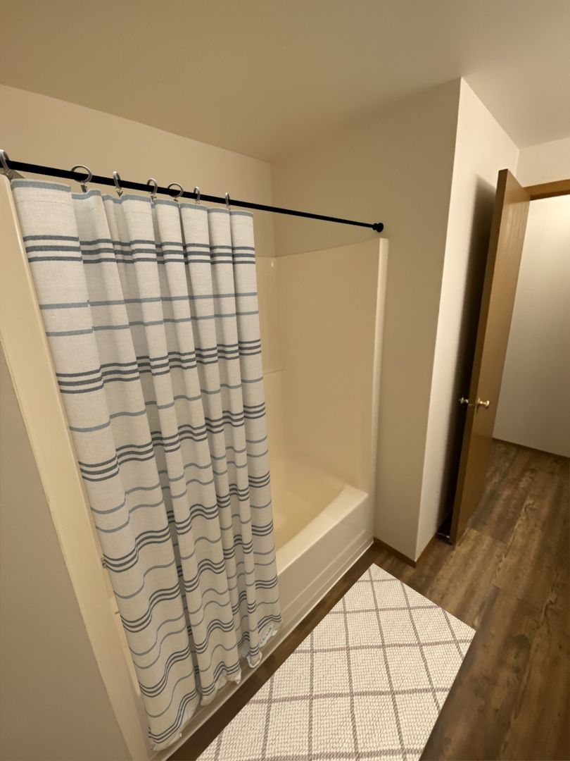 • Bathroom – Tub/shower combo with handy linen storage